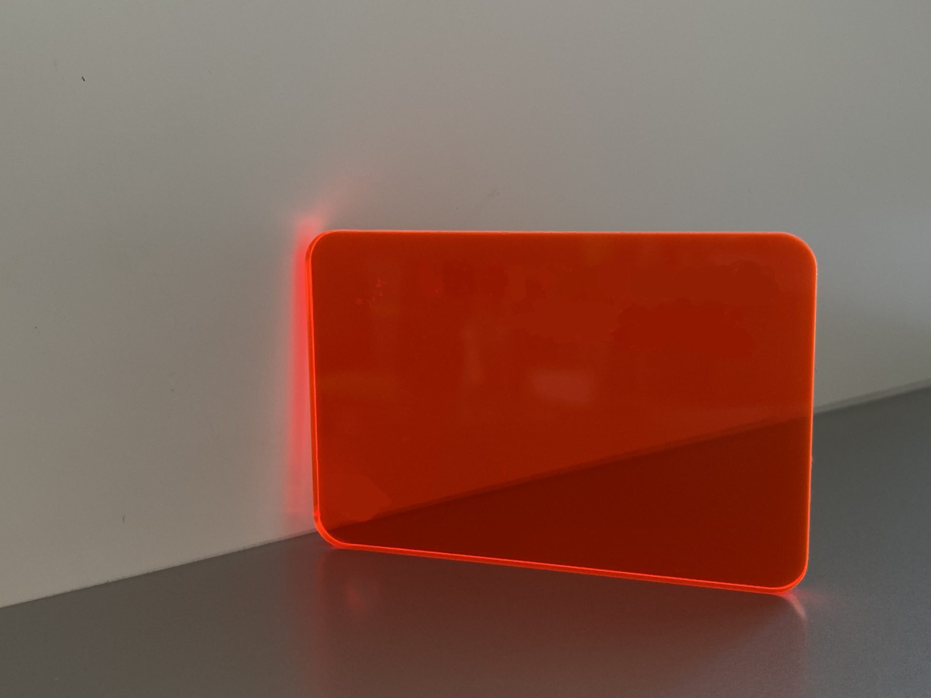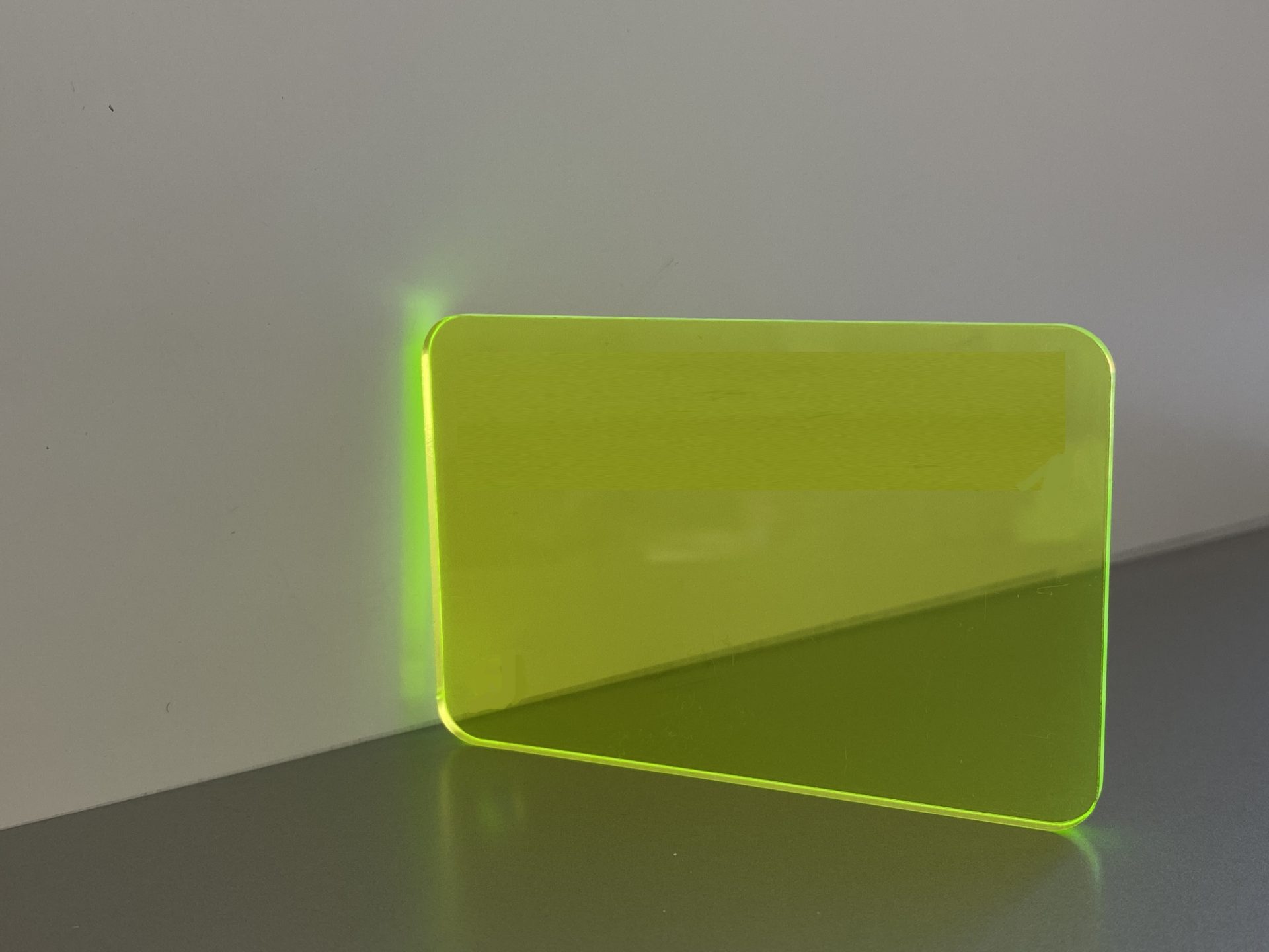 Fluorescentno akrilno staklo može se pohvaliti visokom luminoznošću i izvrsnom prozirnošću. Budući da daje osjećaj optimizma, često ga koriste i dizajneri i arhitekti.