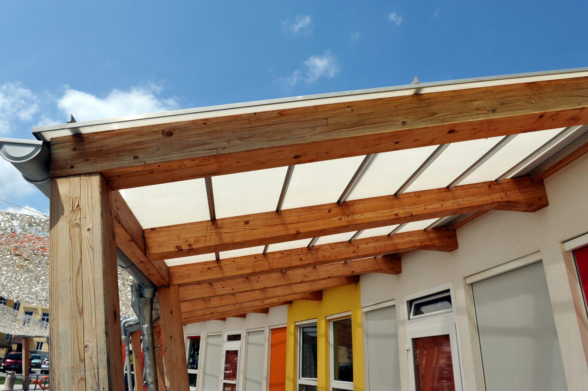 Polikarbonatne ploče su izvrstan pokrov za sve vrste nadstrešnica i pergola gdje je potrebna ili poželjna svjetlost. Konstrukcija može biti drvena ili metalna, ravna ili lučna. Paneli se mogu montirati na uzdužne ili poprečne grede, ili na mrežastu konstrukciju. Kao krovni pokrivač najčešće se koriste paneli debljine 10 ili 16 mm. U slučaju da su rasponi između greda veći, preporučujemo panele debljine 20, 25 ili 32 mm zbog nosivosti.
