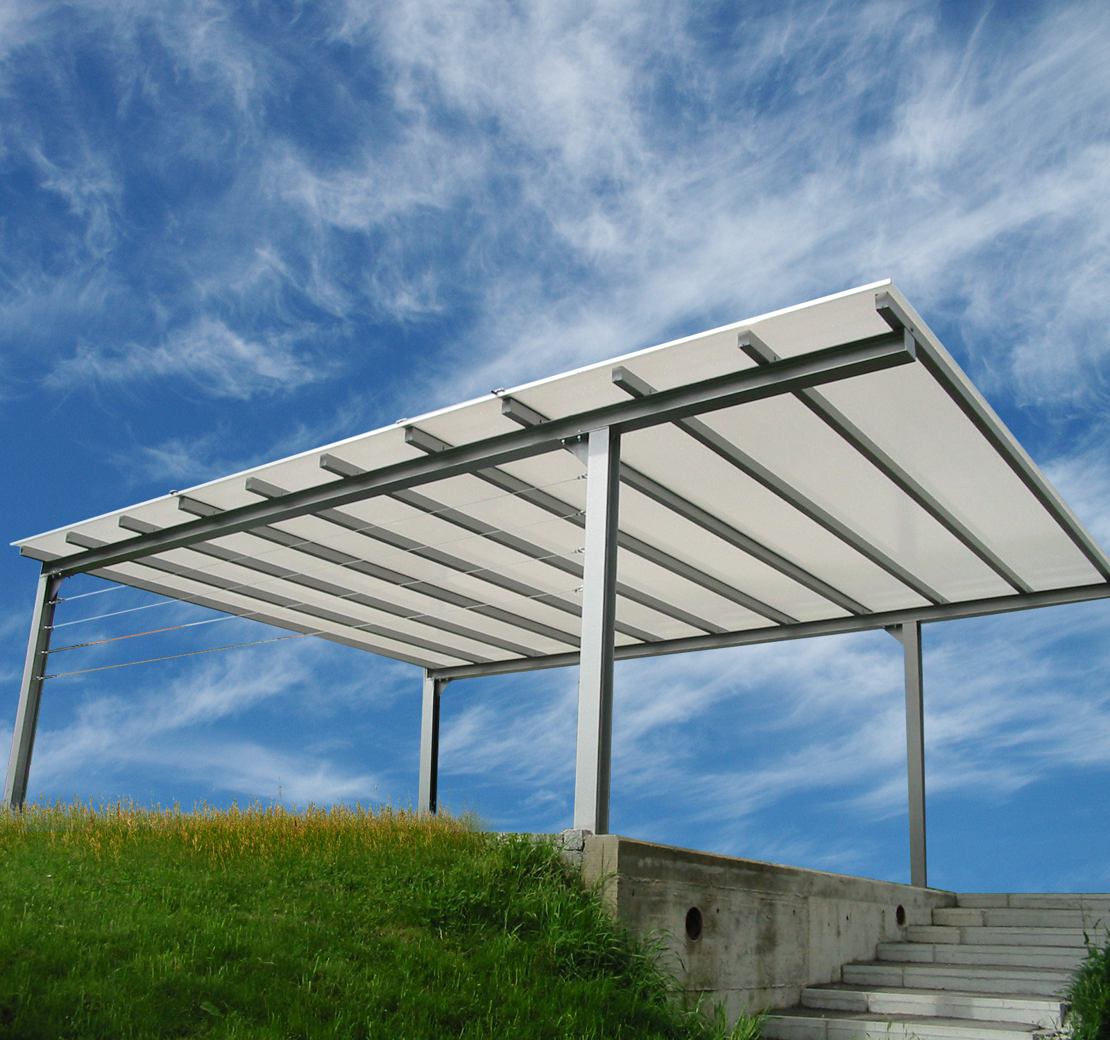 Plošče so sivo-srebrne barve in odbijajo dobršen del toplotne energije sončnih žarkov. Rezultat so nižja temperatura pod nadstreškom in manj neposrednega sonca v notranjosti.